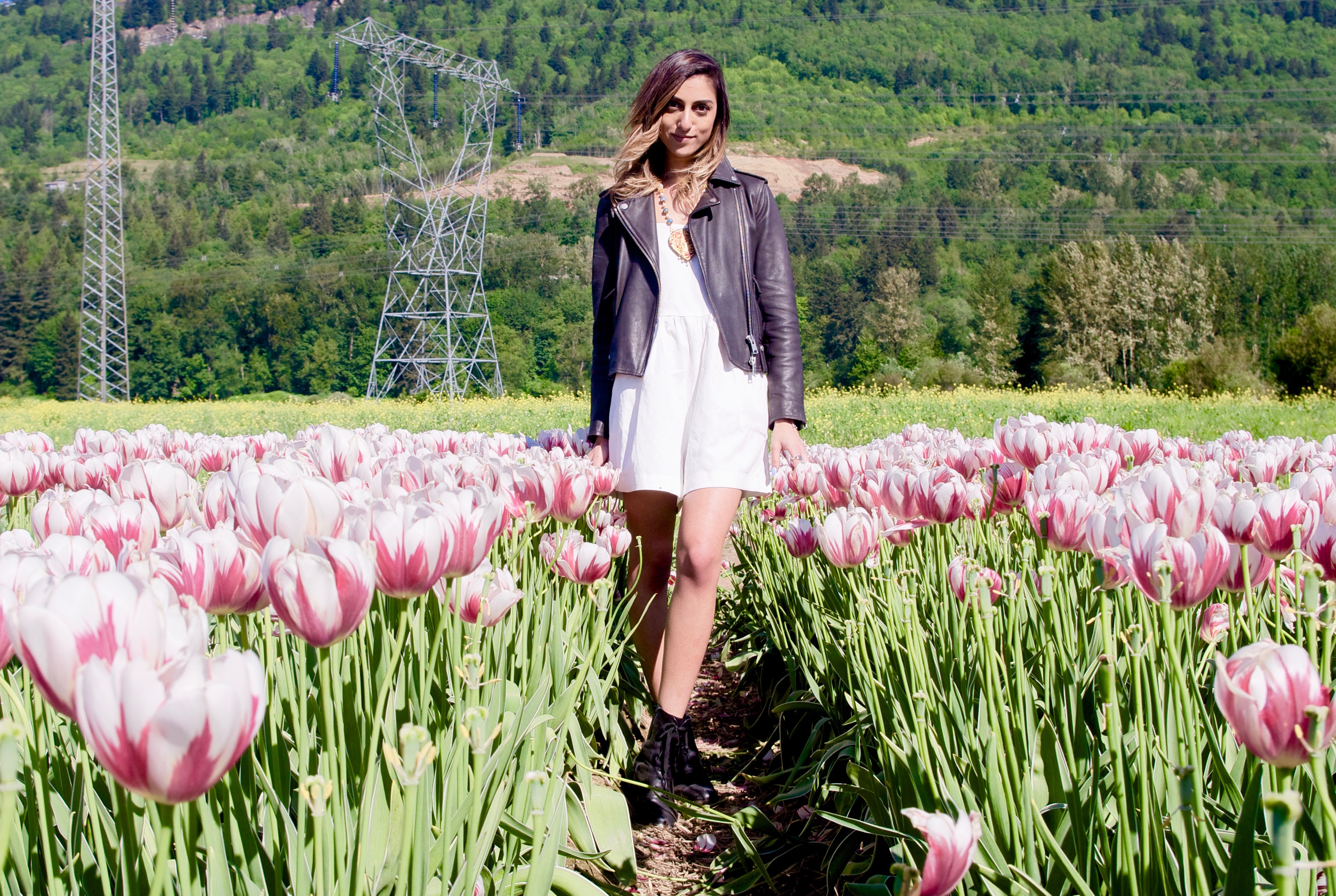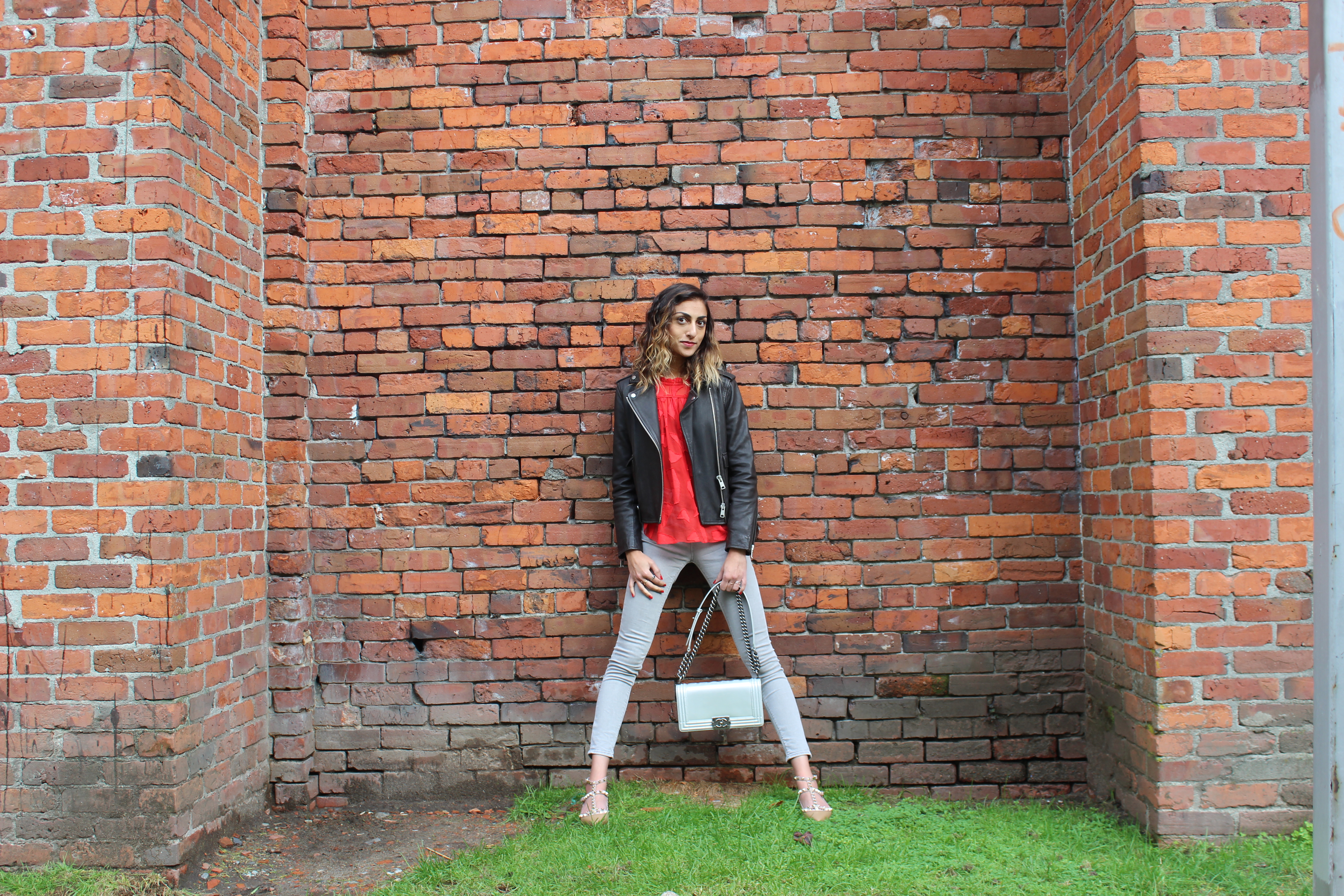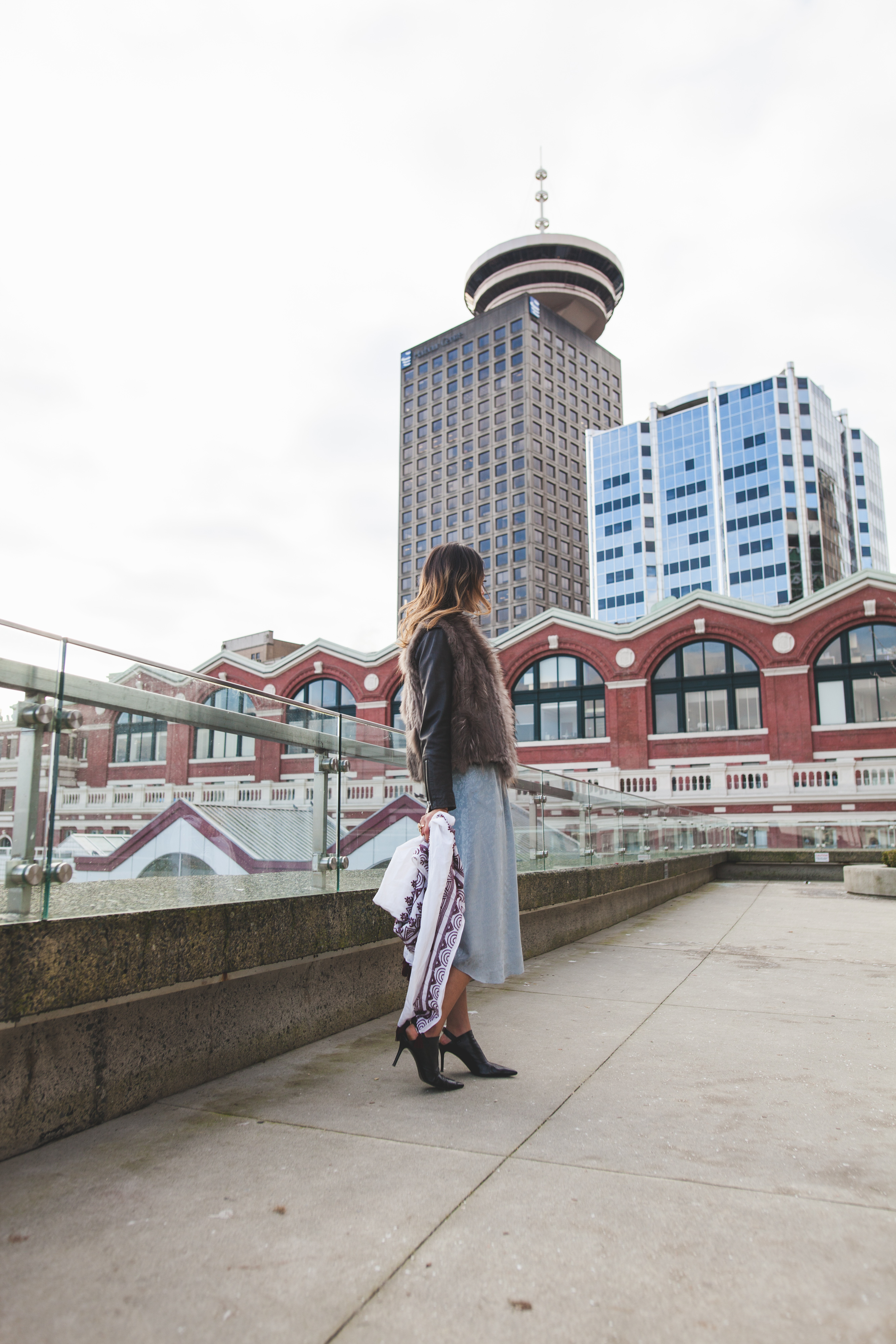 silk dress: Aritzia / bodysuit: Le Fou by Wilfred at Aritzia / boots: Acne / leather jacket: All Saints / scarf: Club Monaco